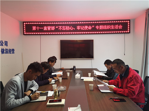 為強化黨章意識,堅定政治信仰,深入學(xué)習(xí)領(lǐng)會黨的十九大精神,深入貫徹“不忘初心、牢記使命”主題教育,10月15日下午2:00,第十一直管部黨支部召開“不忘初心、牢記使命”專題組織生活會。