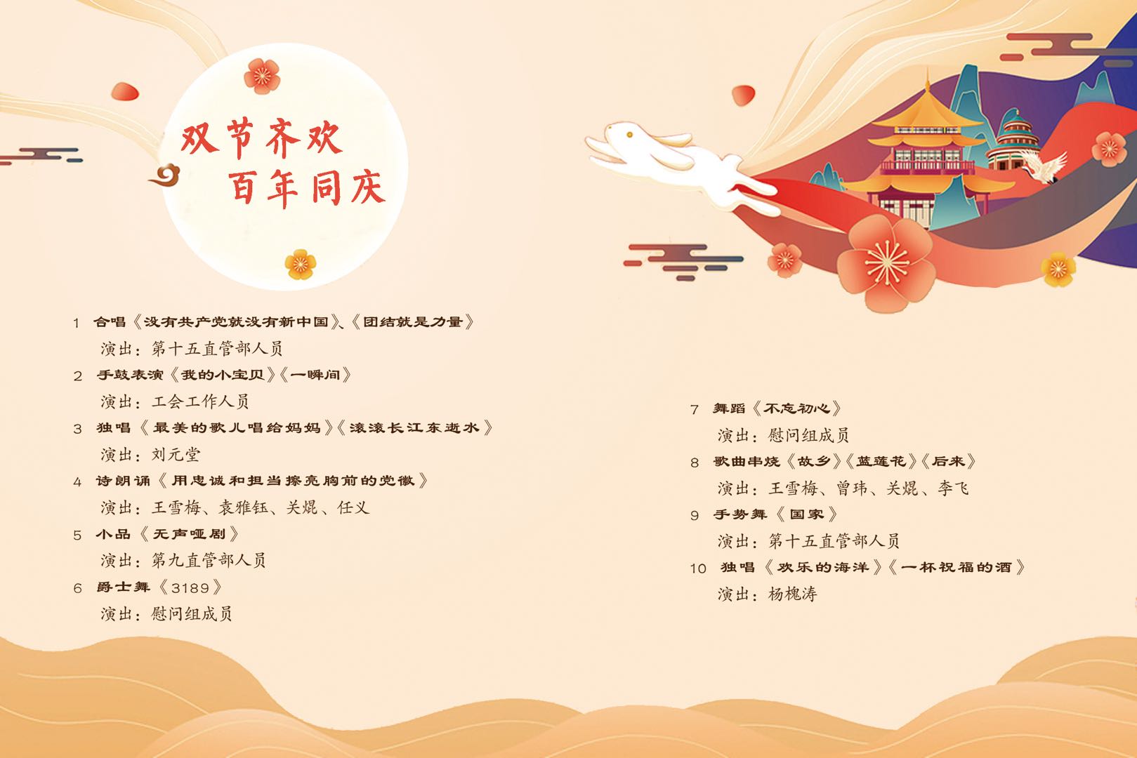 月滿中秋國(guó)慶至,百年華誕二建迎。9月15日-18日,公司黨委書(shū)記、副董事長(zhǎng)萬(wàn)向遵,黨委委員、工會(huì)主席胡云紅,總經(jīng)濟(jì)師陰明珉,生產(chǎn)管理部經(jīng)理攜工會(huì)中秋國(guó)慶慰問(wèn)組一行到昭通鎮(zhèn)雄片區(qū)、曲靖片區(qū)、大理片區(qū)、昆明片區(qū)開(kāi)展“我為群眾辦實(shí)事”文藝演出進(jìn)工地活動(dòng),到公司重點(diǎn)工程、職工相對(duì)集中的施工項(xiàng)目,與一線職工共同歡度中秋國(guó)慶佳節(jié)。