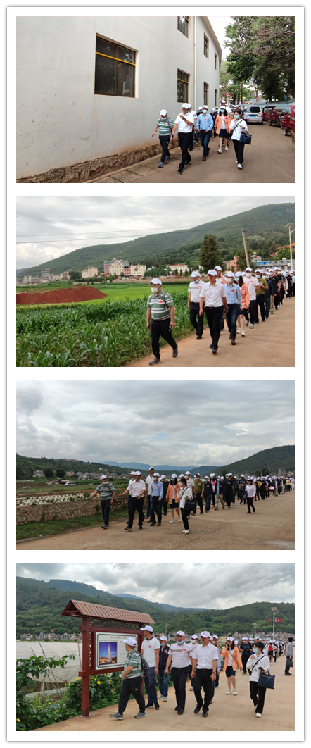 下車后,大家整裝出發(fā),重走長征路。長征好似一篇宣言書,它向所有人宣示著紅軍的偉大與英勇,它向中國人民宣示:紅軍的道路就是解放的道路,能夠通往光明的未來。雖然腳下的路已是干凈平坦的水泥路,但是所有人都知道,過去可不是這樣的路。路,從無到有,從小到大,從艱險到平坦,它的背后隱藏了多少人的身影,淹沒了多少人的面孔,執(zhí)著前行,哪怕刀山火海,哪怕永無回頭……