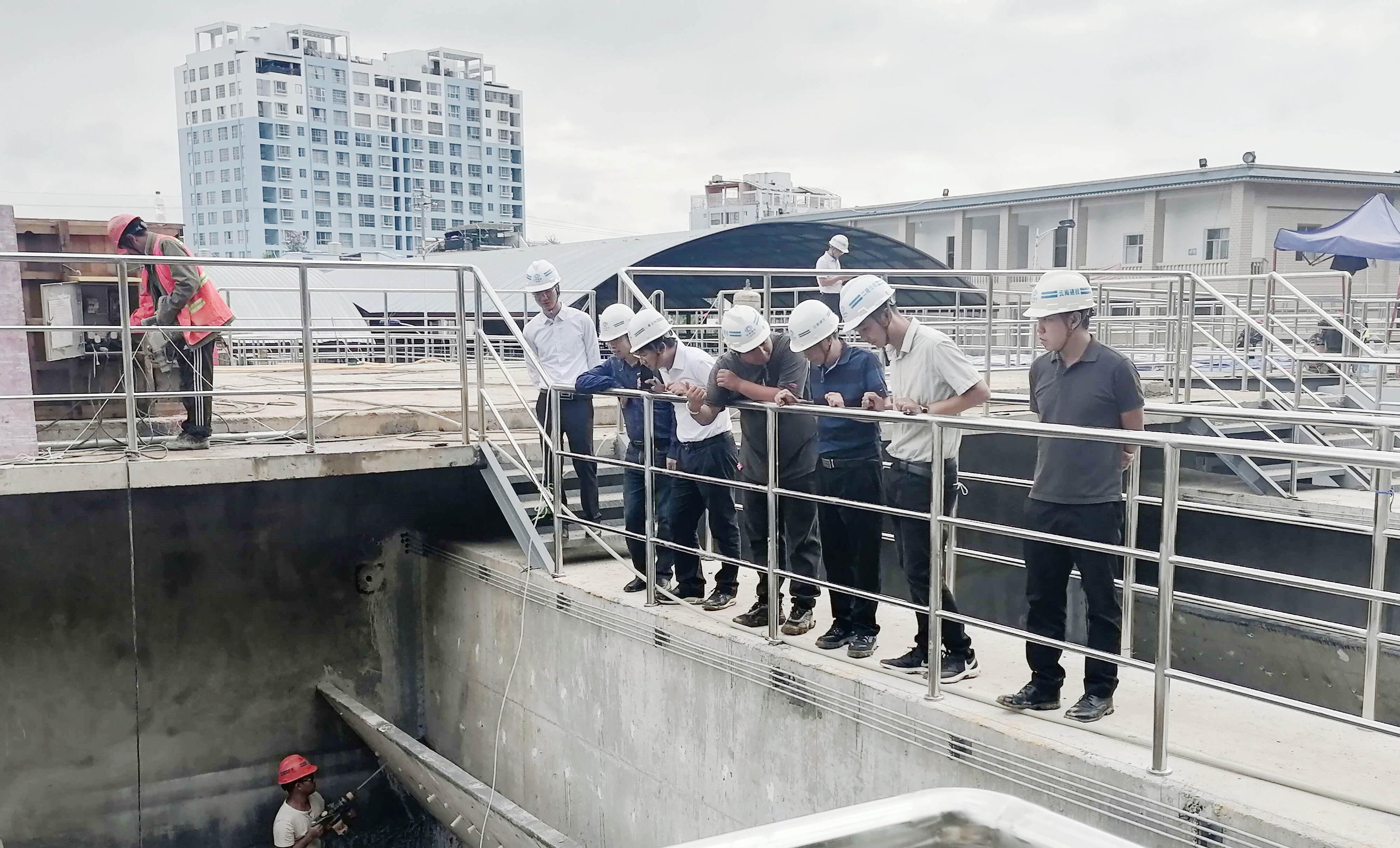 陳定華、萬(wàn)向遵一行深入到施工現(xiàn)場(chǎng)進(jìn)行查看,實(shí)地了解項(xiàng)目施工情況,對(duì)土建及安裝單位的安全及現(xiàn)場(chǎng)進(jìn)度、質(zhì)量的管控進(jìn)行檢查。陳定華對(duì)項(xiàng)目團(tuán)隊(duì)做出的努力給予了肯定,并指出,一是在施工過(guò)程中,要嚴(yán)把安全關(guān)、質(zhì)量關(guān),加強(qiáng)施工前監(jiān)督管理工作。二是根據(jù)施工合同要求,做好進(jìn)度控制工作,嚴(yán)格落實(shí)糾偏措施。三是落實(shí)好集團(tuán)“四保一控一樹(shù)”要求,做好現(xiàn)場(chǎng)管控。四是加強(qiáng)項(xiàng)目團(tuán)隊(duì)建設(shè),注重人才培養(yǎng),切實(shí)提升項(xiàng)目綜合管理能力。五是三水廠(chǎng)擴(kuò)建是民生工程,要加快施工進(jìn)度,確保完成節(jié)點(diǎn),今年下半年文山市民不再為飲用水堪憂(yōu)。