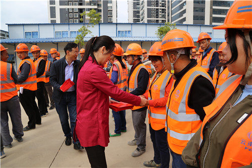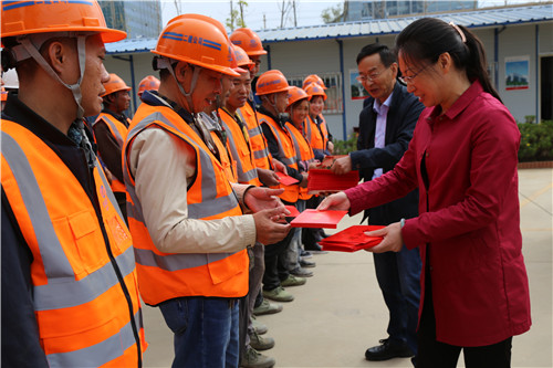 最后,張弛和楊金為100名優(yōu)秀民工代表發(fā)放慰問金,并叮囑大家在一線注意安全,平安工作。