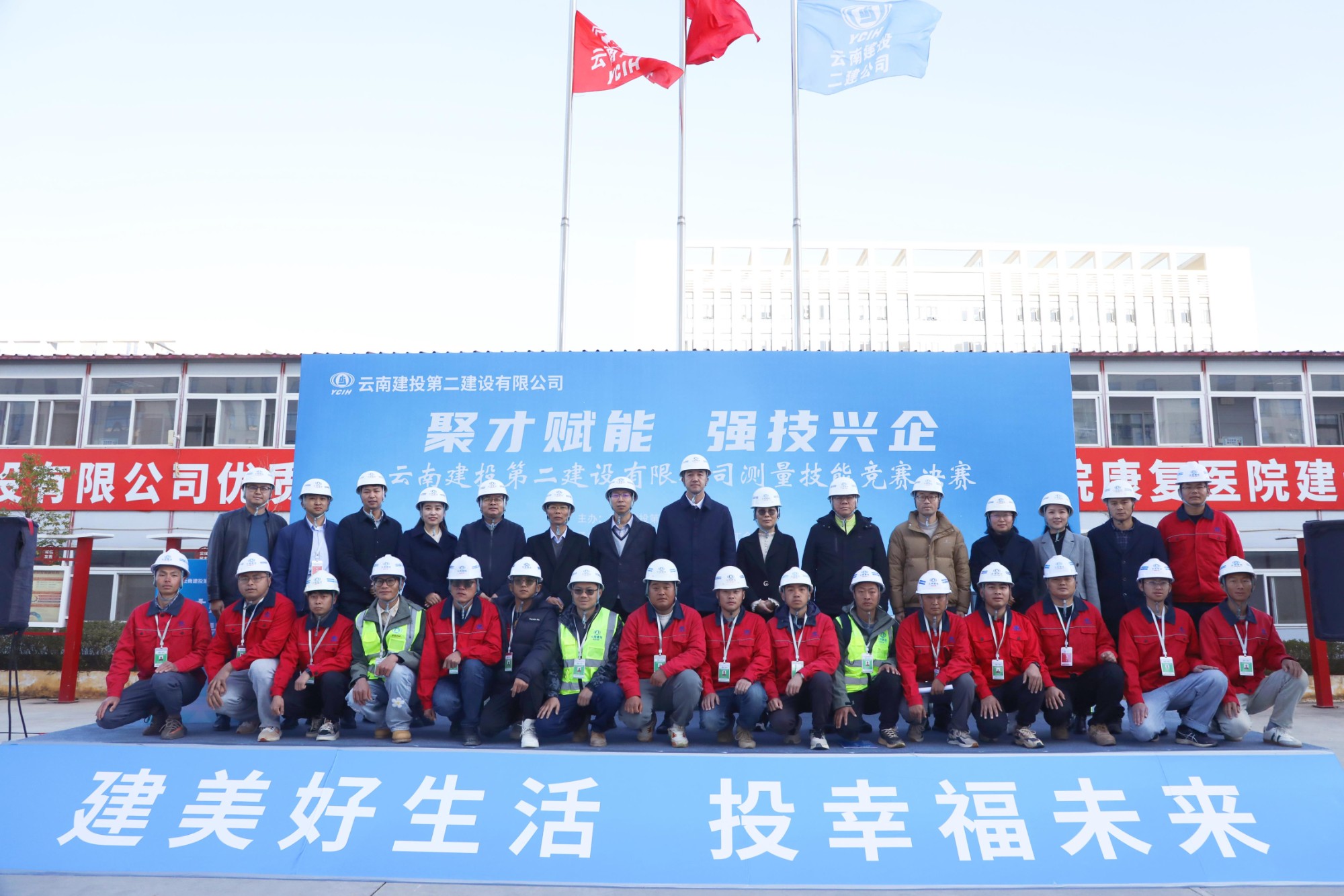 12月30日上午,公司2024年“聚才賦能 強技興企”測量技能競賽在昆明市醫(yī)科大學第一附屬醫(yī)院呈貢醫(yī)院項目部隆重開幕。公司黨委委員、董事、副總經(jīng)理(主持工作)臧慶澤,黨委委員、工會主席、副總經(jīng)理李斌,昆明冶金高等專科學校測繪學院副院長萬保峰教授,學院基地主任張偉紅教授,學院自動化變形監(jiān)測中心主任楊萬樞副教授,學院測繪與地理信息技術(shù)教研室主任黎劍副教授出席開幕式。公司總工程師陳強主持開幕式。